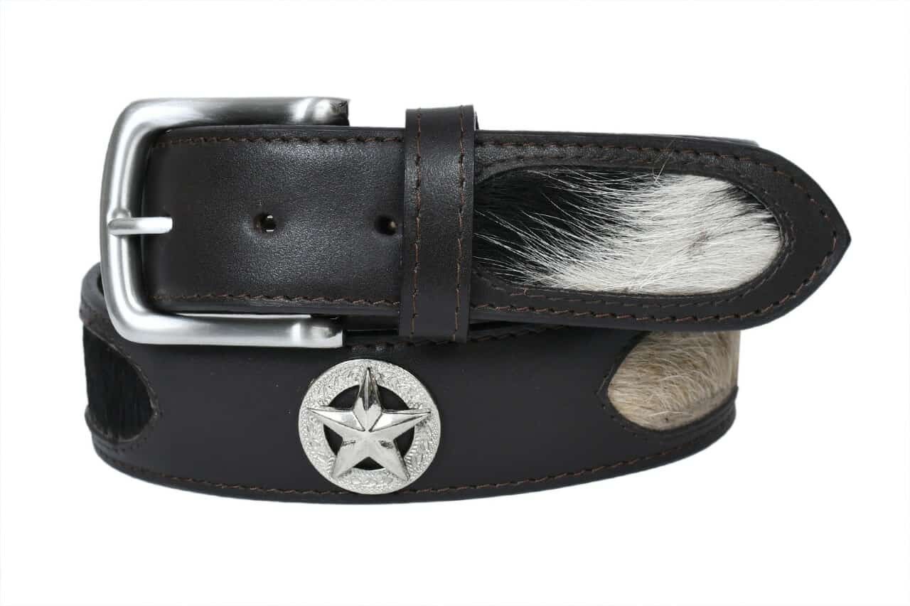 Belt - Western Star Concho- Leather - Dark Brown with Cowhide Inserts - [Code LB306]