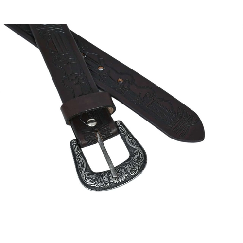 Belt - Western - Leather - Taupe - Running Horses Embossed - [LB332]