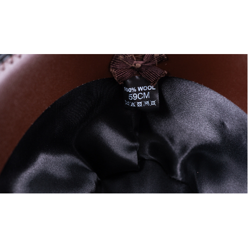 Deep Brown Adults Wool Felt Hat with Cattleman Shaped Crown. Acorn is a deep chocolate Brown Colour Individual sizes range from 55cm to 61cm. Also available in different colours, and matching kids sizes.
